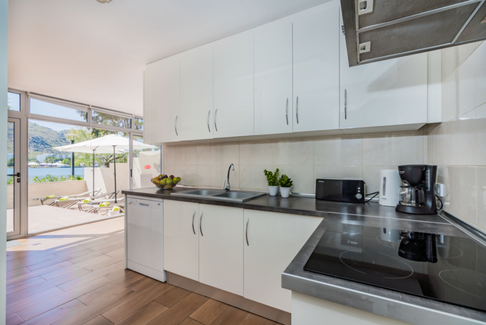 De onafhankelijke inductiekeuken is uitgerust met een koelkast, magnetron, oven, vriezer, vaatwasser, servies/bestek, keukengerei, koffiezetapparaat, broodrooster, waterkoker, staafmixer en sapcentrifuge.
